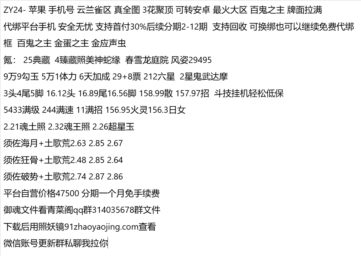 ZY24- 苹果 手机号 云兰雀区 真全图 3花聚顶 可转安卓 最火大区 百鬼之主 牌面拉满