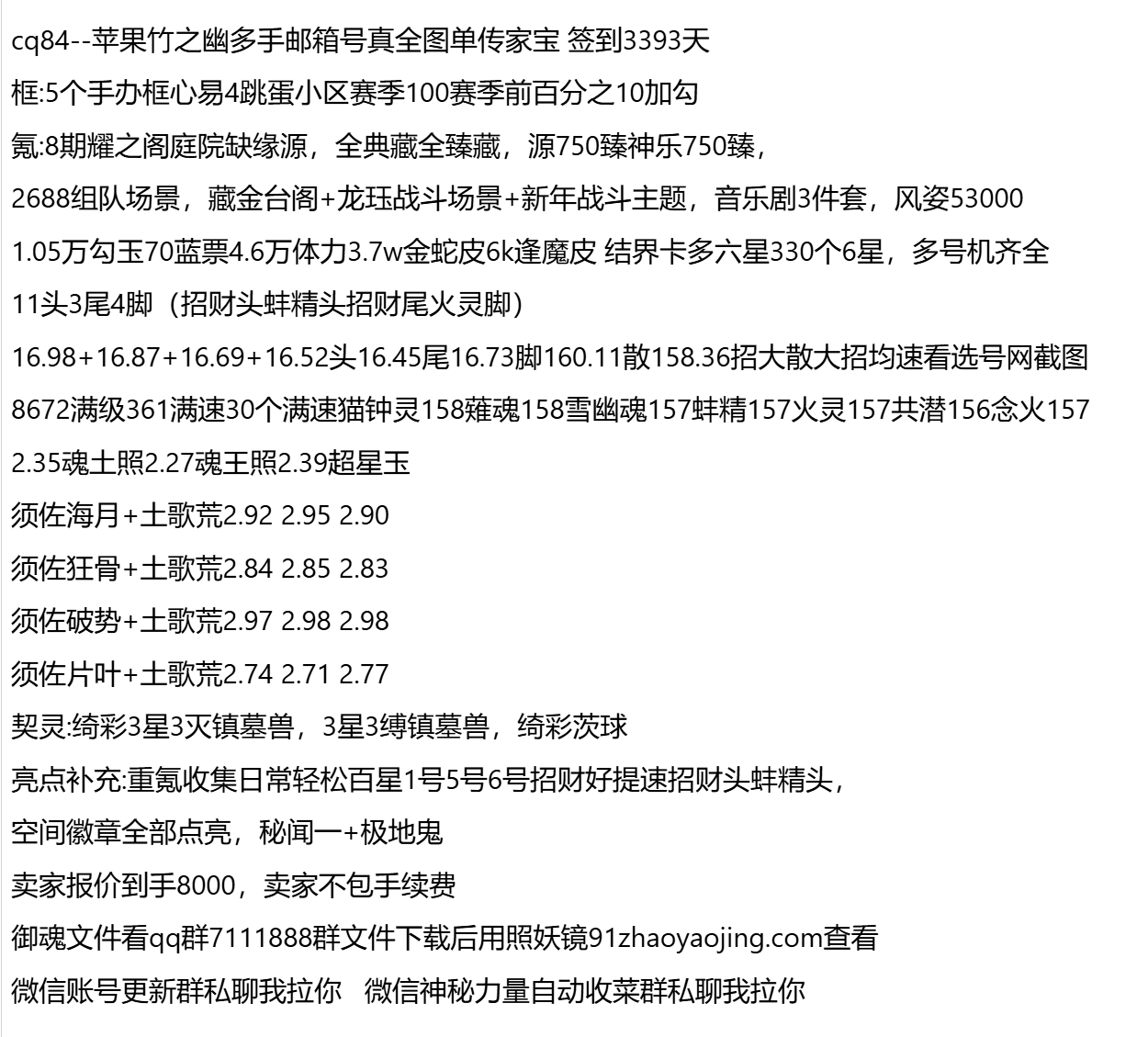 cq84--苹果竹之幽多手邮箱号真全图单传家宝 签到3393天