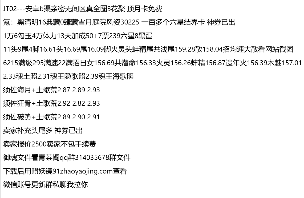 6215满级295满速22满招日女156.69共潜命156.33火灵156.26蚌精156.87遗年火156.39木魅157.01