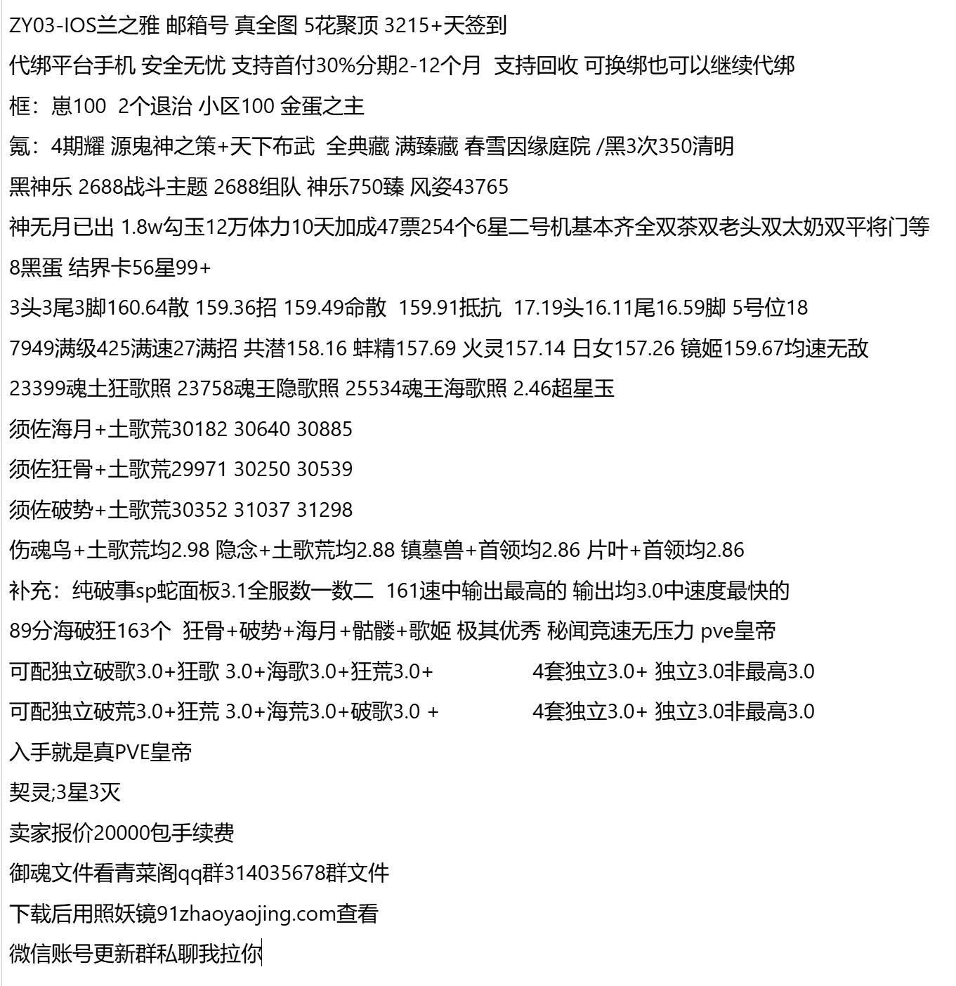 ZY03-IOS兰之雅 邮箱号 真全图 5花聚顶 3215+天签到