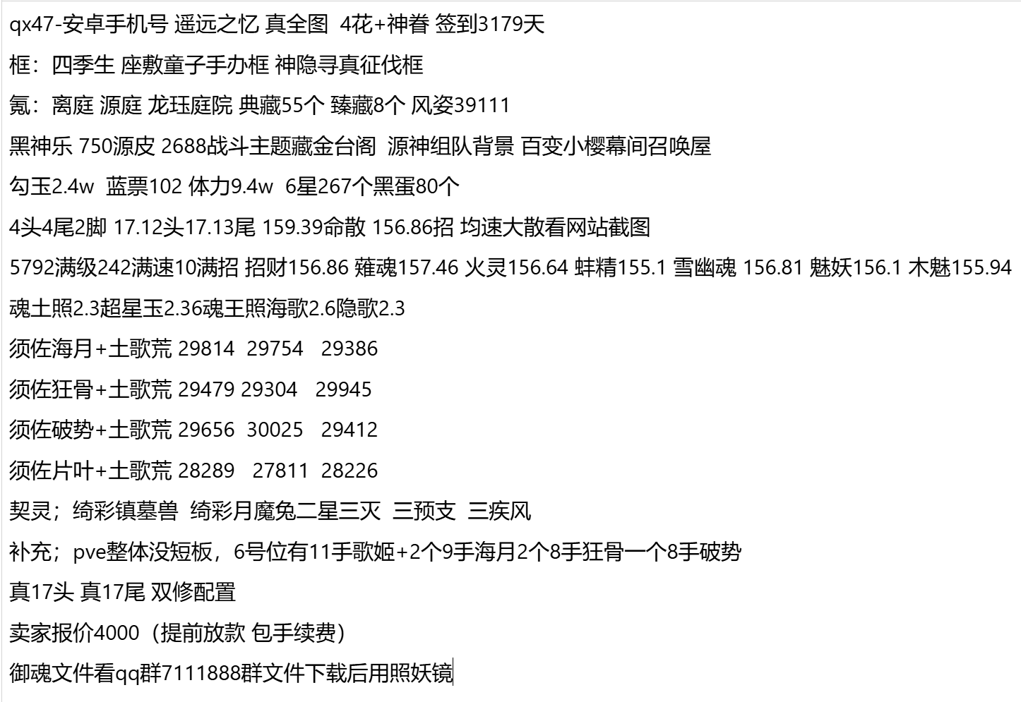 qx47-安卓手机号 遥远之忆 真全图 4花+神眷 签到3179天