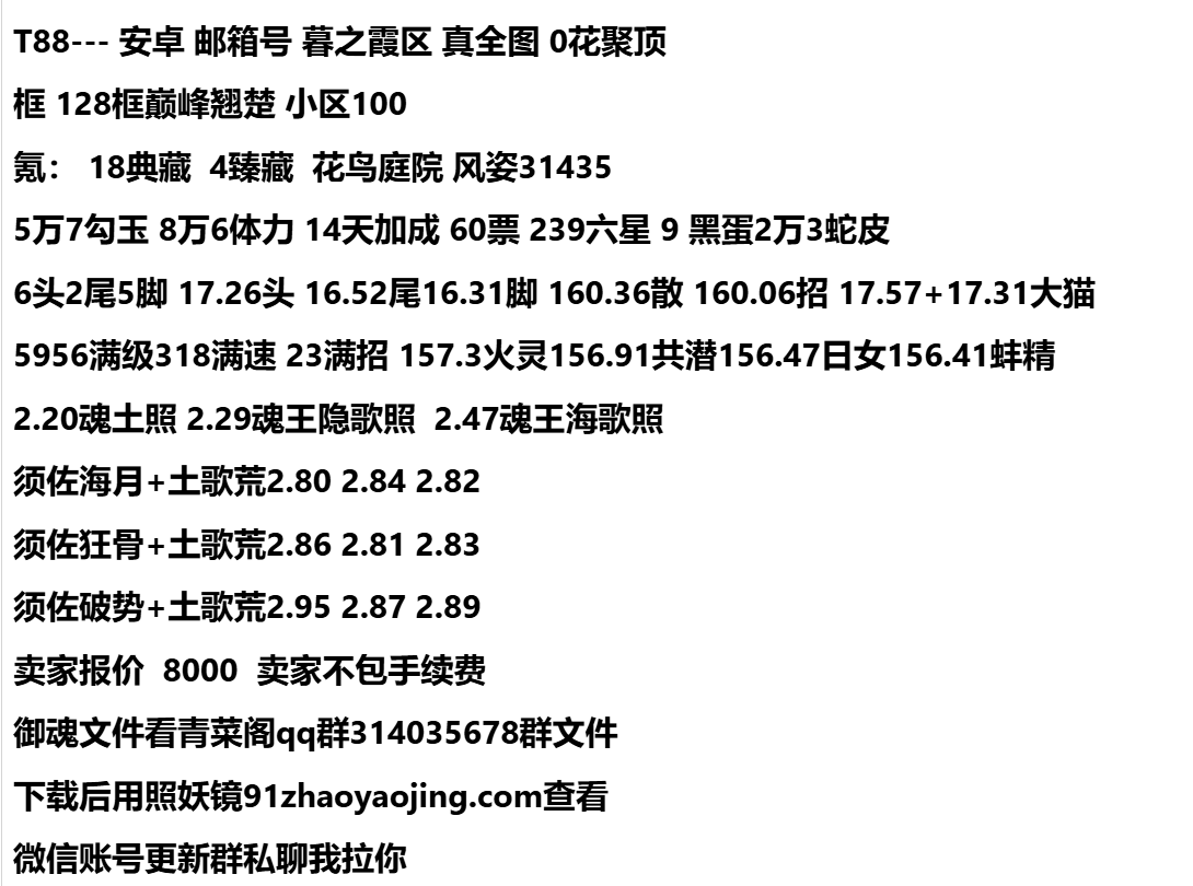 T88--- 安卓 邮箱号 暮之霞区 真全图 0花聚顶