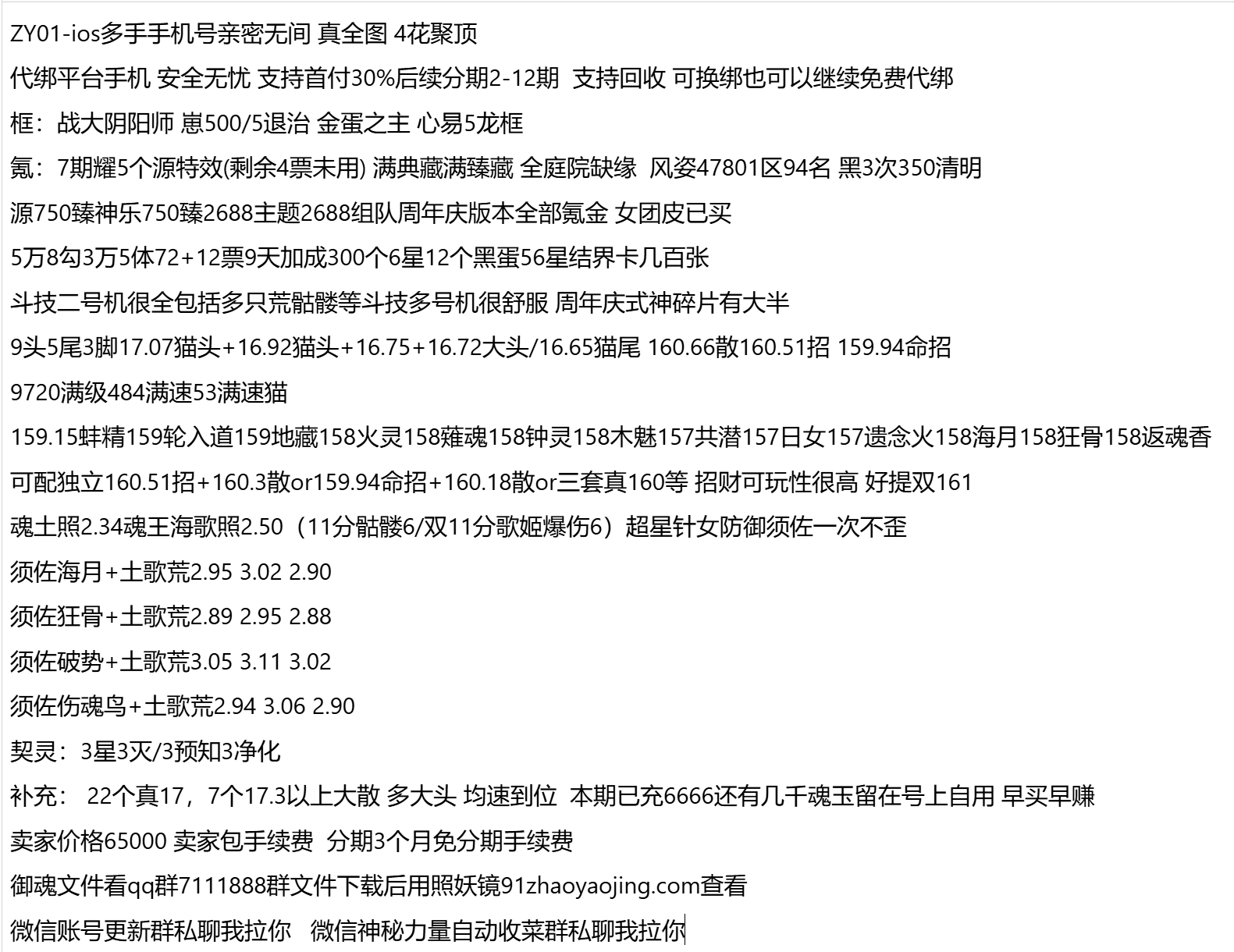 补充: 22个真17,7个17.3以上大散 多大头 均速到位 本期已充6666还有几千魂玉留在号上自用 早买早赚