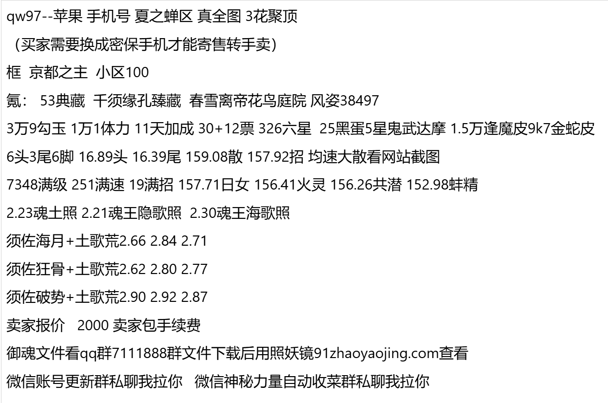 qw97--苹果 手机号 夏之蝉区 真全图 3花聚顶
