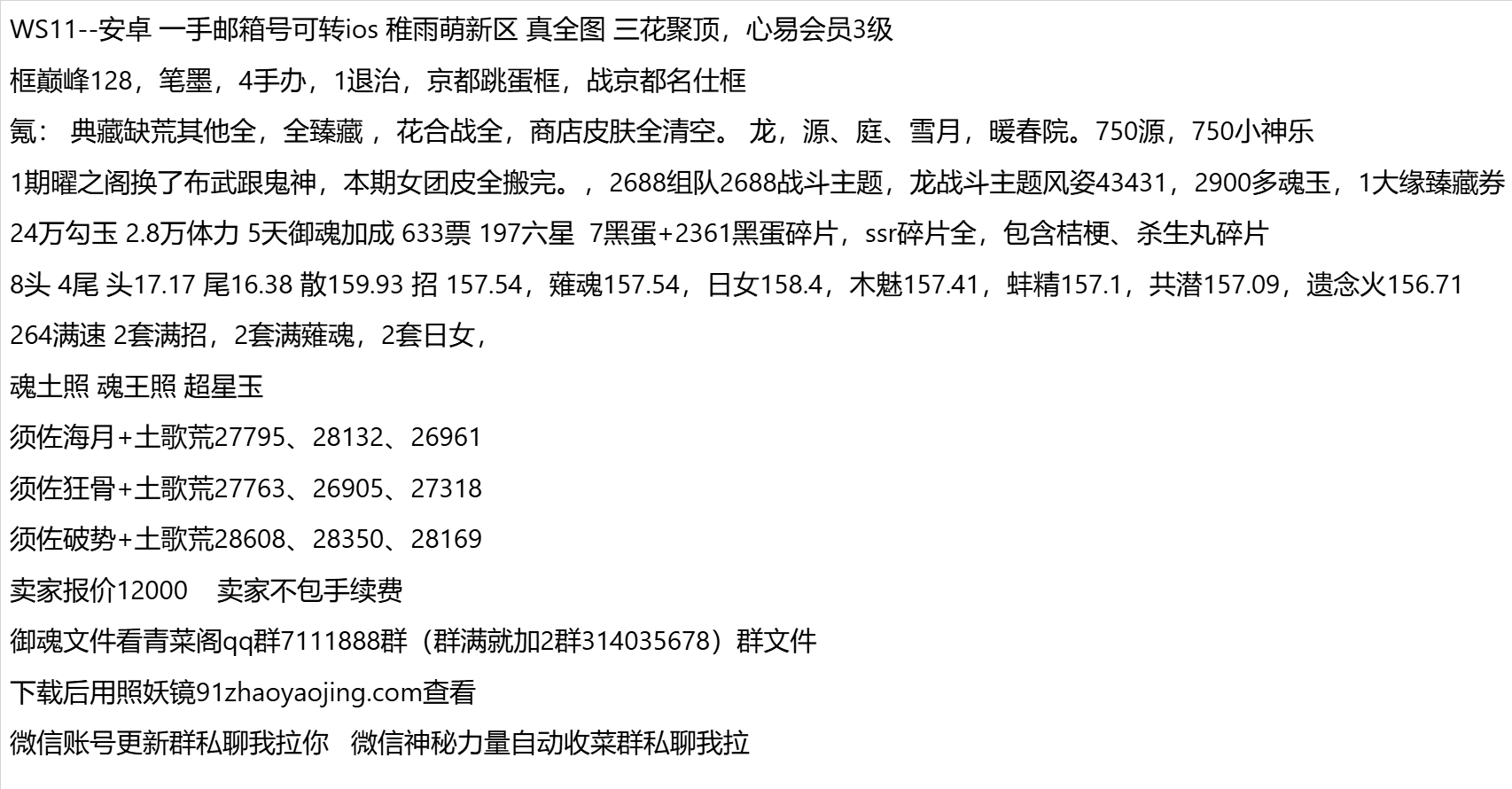 WS11--安卓 一手邮箱号可转ios 稚雨萌新区 真全图 三花聚顶,心易会员3级