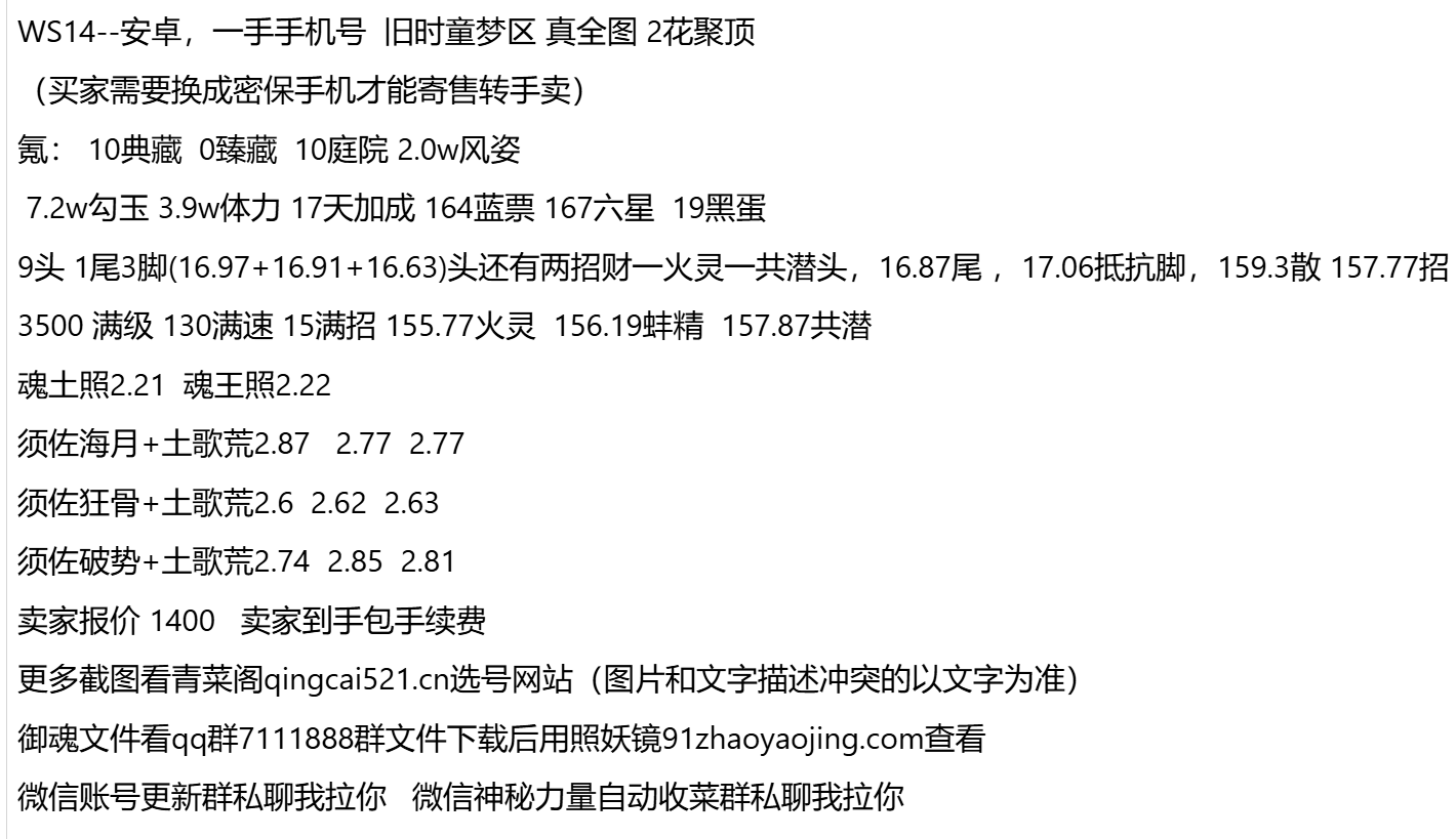 WS14--安卓,一手手机号 旧时童梦区 真全图 2花聚顶