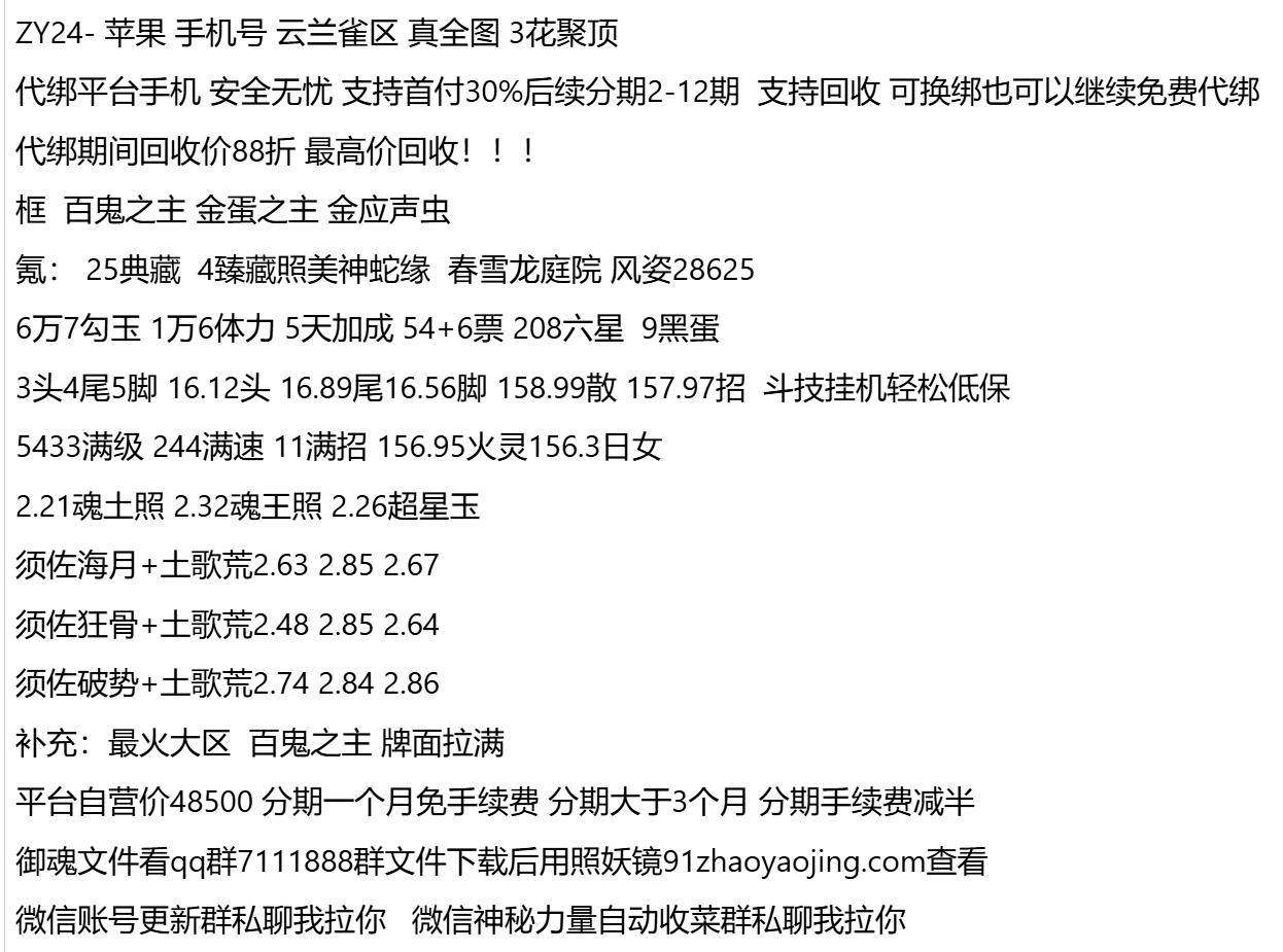 ZY24- 苹果 手机号 云兰雀区 真全图 3花聚顶