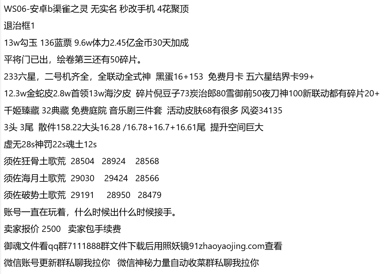 WS06-安卓b渠雀之灵 无实名 秒改手机 4花聚顶