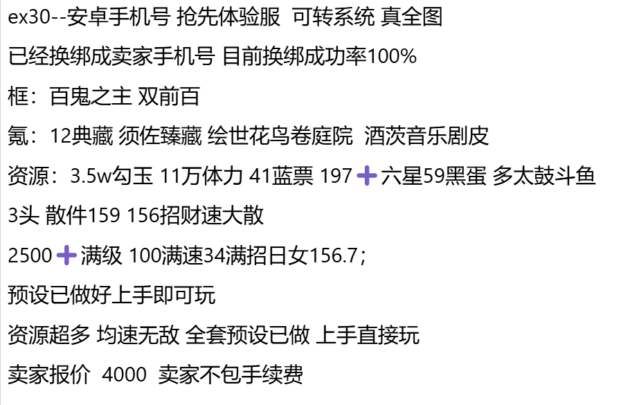 ex30--安卓手机号 抢先体验服 可转系统 真全图