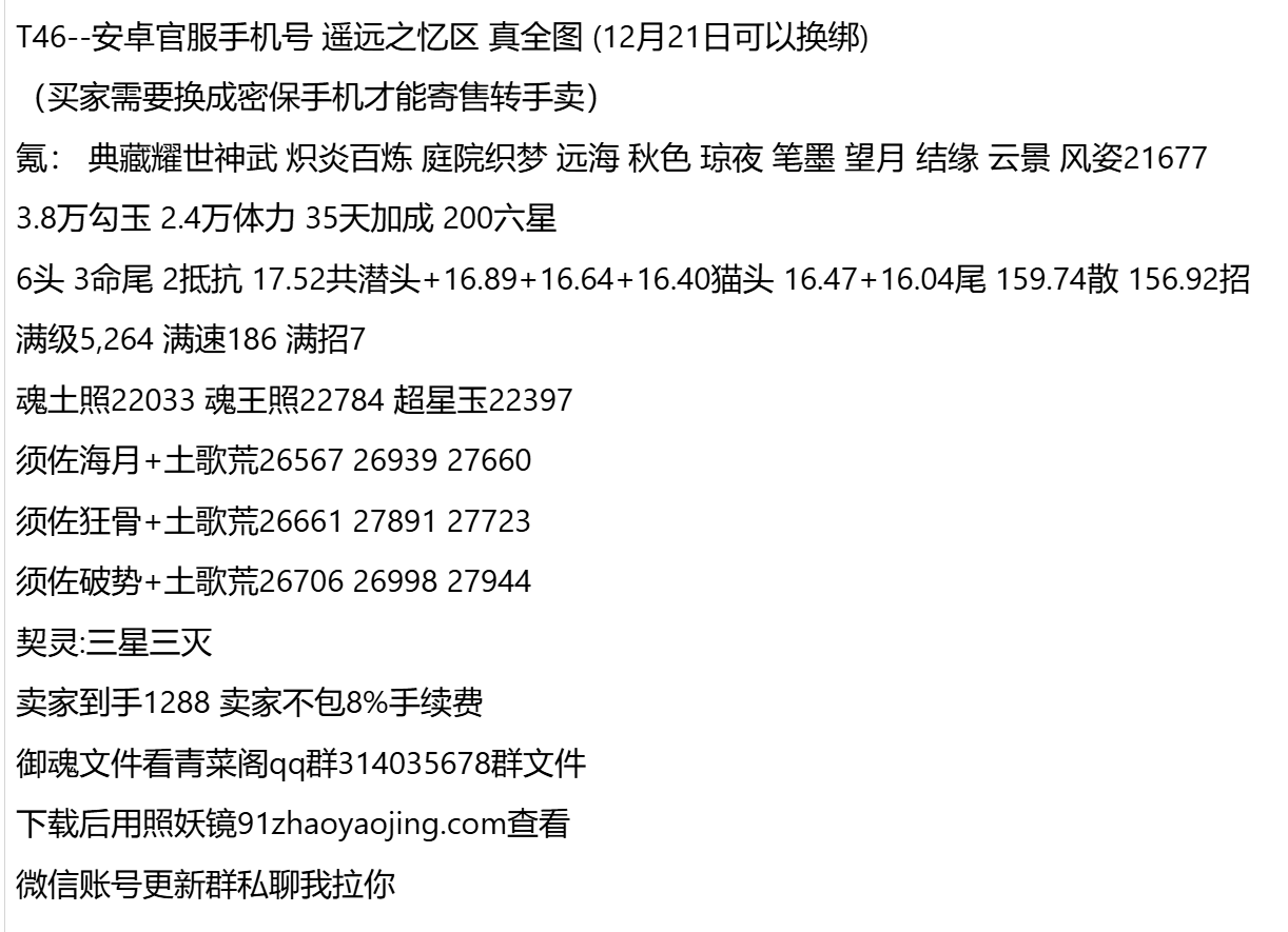 T46--安卓官服手机号 遥远之忆区 真全图 (12月21日可以换绑)
