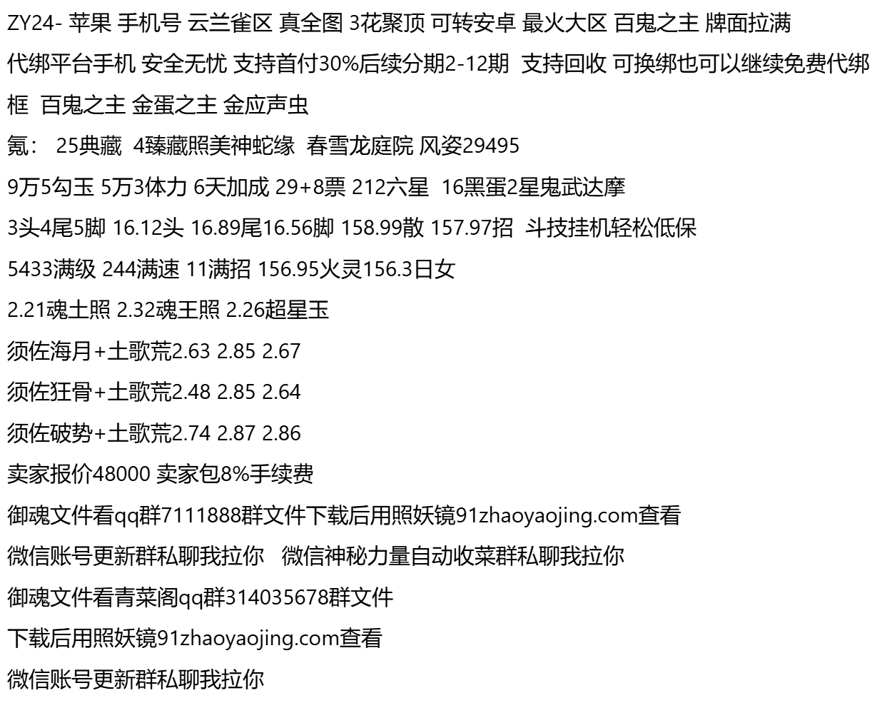 ZY24- 苹果 手机号 云兰雀区 真全图 3花聚顶 可转安卓 最火大区 百鬼之主 牌面拉满