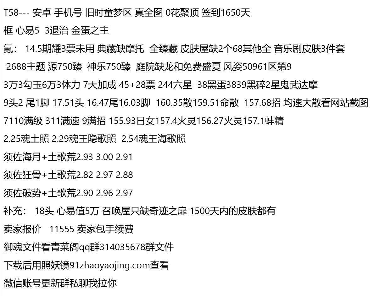T58--- 安卓 手机号 旧时童梦区 真全图 0花聚顶 签到1650天